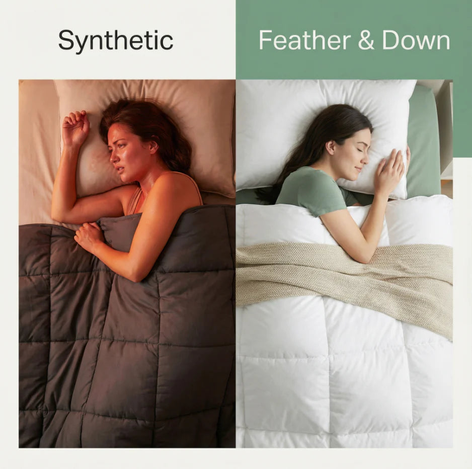 Unlike synthetic or poorly ventilated quilts, feather and down naturally breathe and release excess heat. This helps reduce night sweats and keeps your sleep temperature more stable.