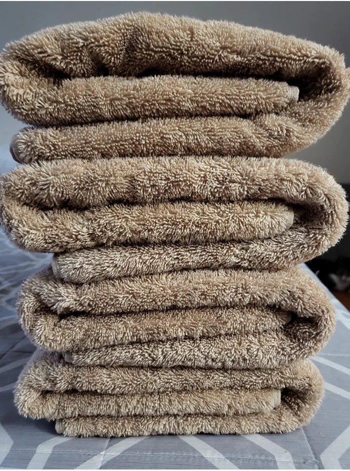 Our towels are made from premium long-staple cotton, providing superior softness, absorbency, and durability. Unlike standard towels, they stay plush and fresh even after repeated washes.