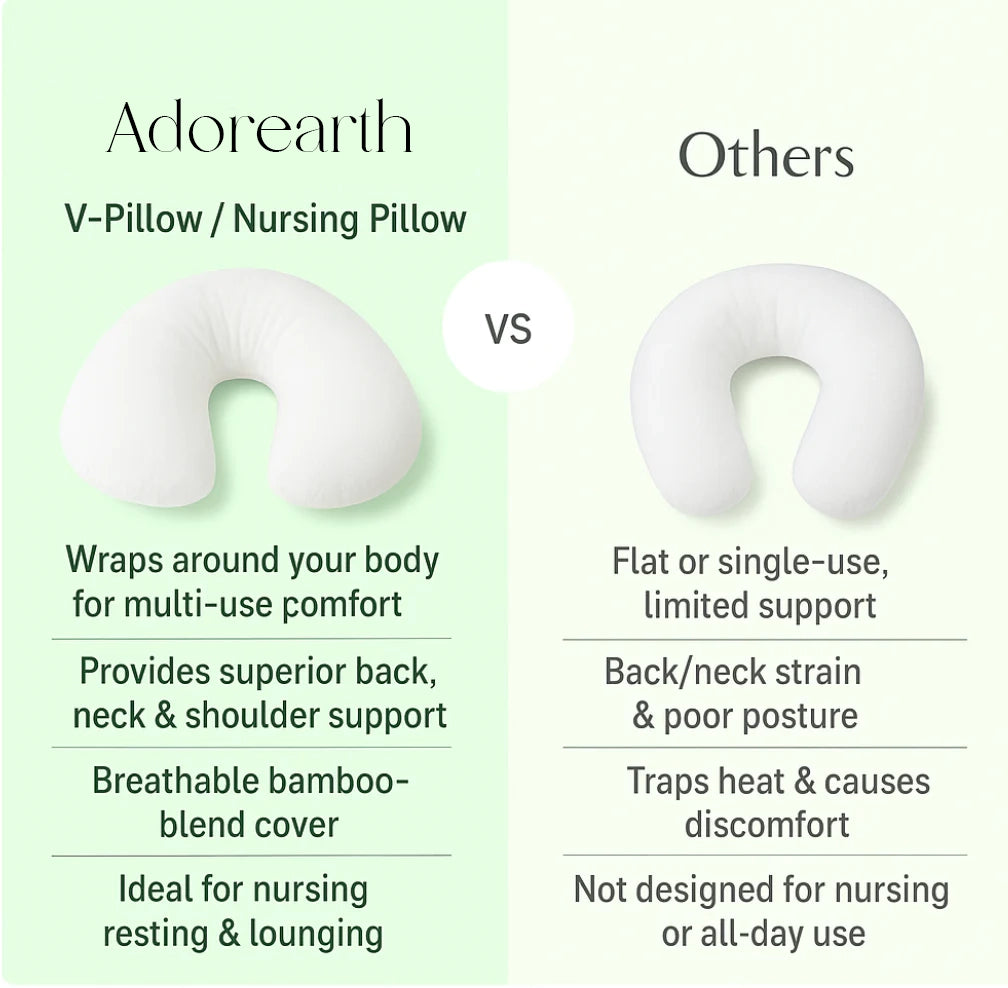 Elevate your comfort! Our V-Shaped Nursing Pillow transforms feeding time into a supported, strain-free experience. Improve posture, reduce shoulder and neck tension, and create a cozy, stable hold for every feed — 90-day risk-free trial + free shipping. Shop now and make every moment more comfortable.