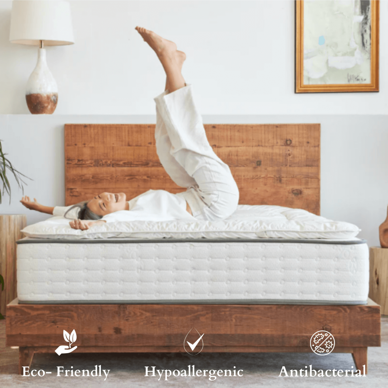 Upgrade your sleep with our Adorearth Organic Bamboo Mattress Topper. This premium topper adds a plush, cloud-like layer to your mattress, providing unparalleled comfort and support. Not only does it make your bed feel incredibly cozy and snuggly, but it also extends the life of your mattress, ensuring you enjoy luxurious, restful sleep night after night.