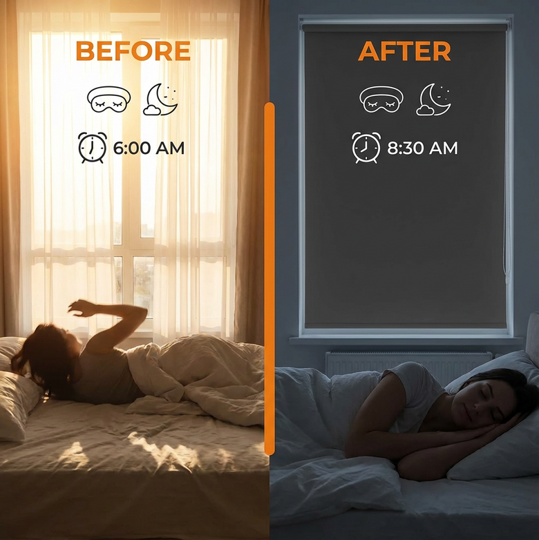 Transform your sleep tonight! Our 100% Blackout Blinds turn any room into a cool, pitch-dark sanctuary. Block harsh sunlight, reduce heat, and enjoy deeper, uninterrupted rest — 90-day risk-free trial + free shipping. Shop now and reclaim your best night's sleep!
