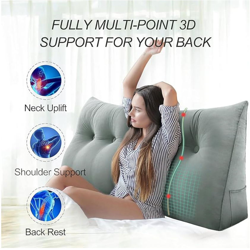 Ditch the pile of pillows. Our triangular backrest cushion gives you plush support for your back, neck, and shoulders — whether you're reading, relaxing, or working in bed. It's the ultimate upgrade for your nightly wind-down.