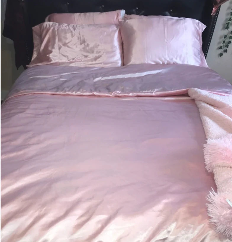 Our quilt cover set is made from premium silk-finish satin, designed to deliver the smoothness and beauty benefits of silk with far better durability, affordability, and easy care. Unlike traditional silk, it won’t snag, shrink, or require special cleaning.